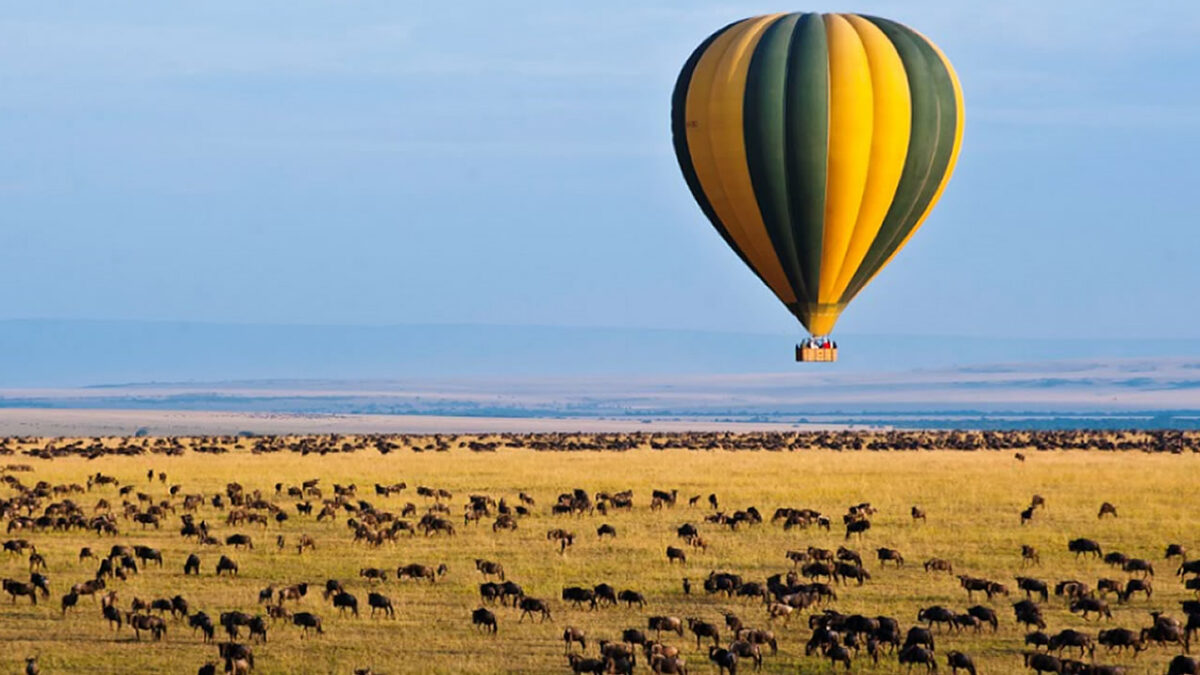 The Maasai Mara remains the premier location for hot air balloon safaris due to its open terrain and strong wildlife density. During the Great Migration, aerial views of wildebeest herds moving across the plains or gathering near the Mara River create particularly striking scenes.